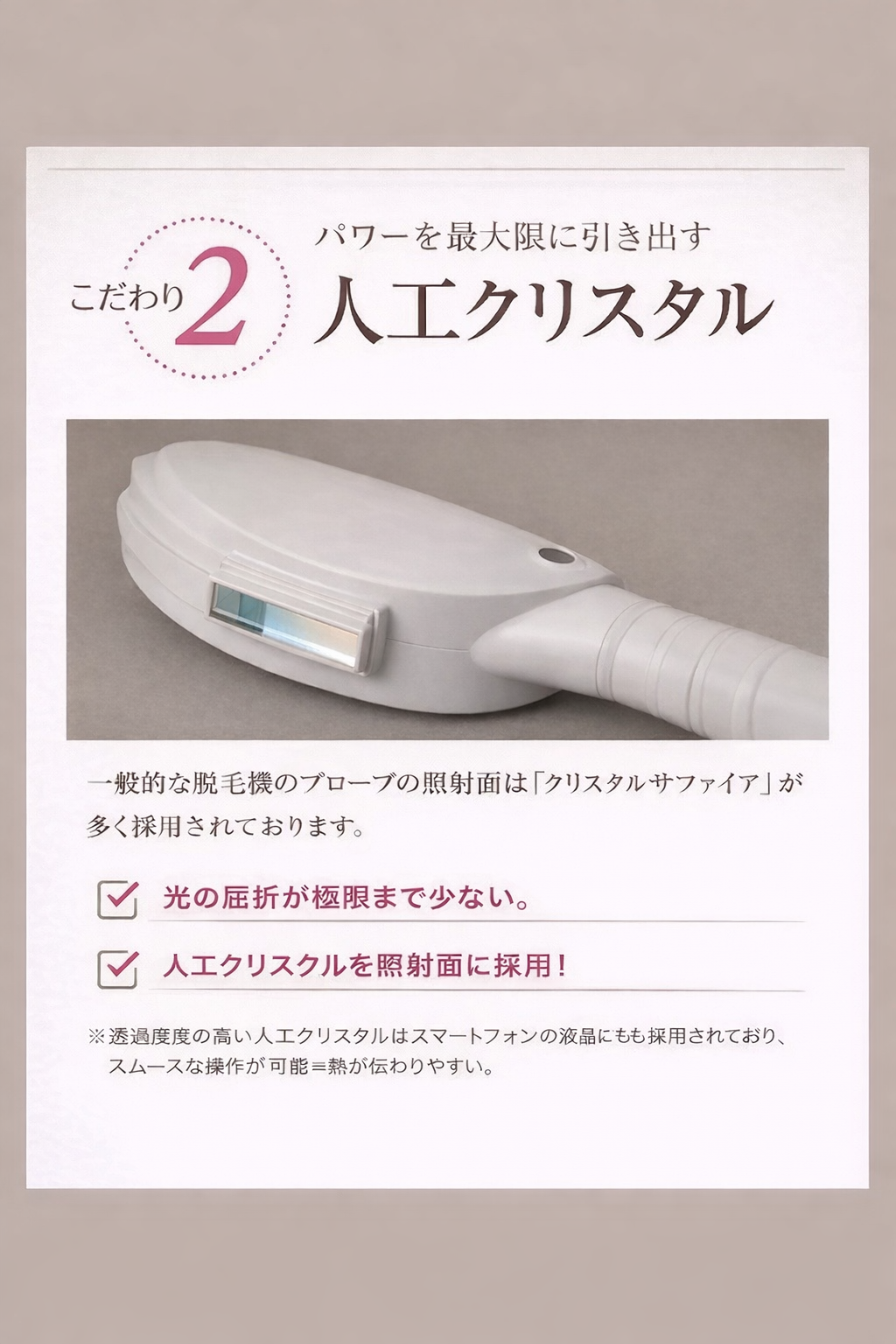 、脱毛効果に違いが出ます。人工クリスタルも